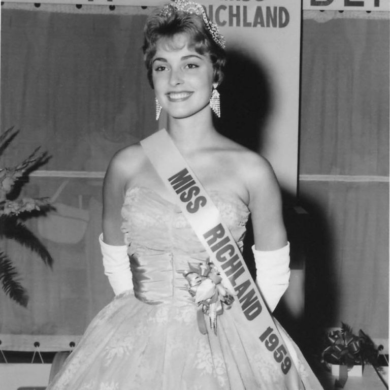 16-year-old Sharon being crowned Miss Richland, at Riverside Park in Washington during the Atomic Frontier Days.